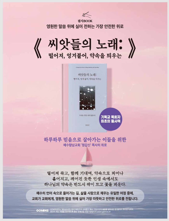 성도의 삶을 '씨앗의 여정'에 빗댄 웅숭깊은 위로, 정갑신 목사 신간 <씨앗들의 노래>. 이 책은 ‘씨앗’이라는 친숙한 소재를 통해, 고난 속에서 떨어져 죽는 듯 보이지만 결국 말씀과 공동체 안에서 싹을 틔우고야 마는 신앙의 갸륵한 여정을 깊이 있게 그려냅니다. 예수향남교회 정갑신 목사의 깊은 묵상과 투명한 문장으로, 분투하는 오늘을 살아가는 성도와 교회를 향한 가장 안전한 위로를 건넵니다.